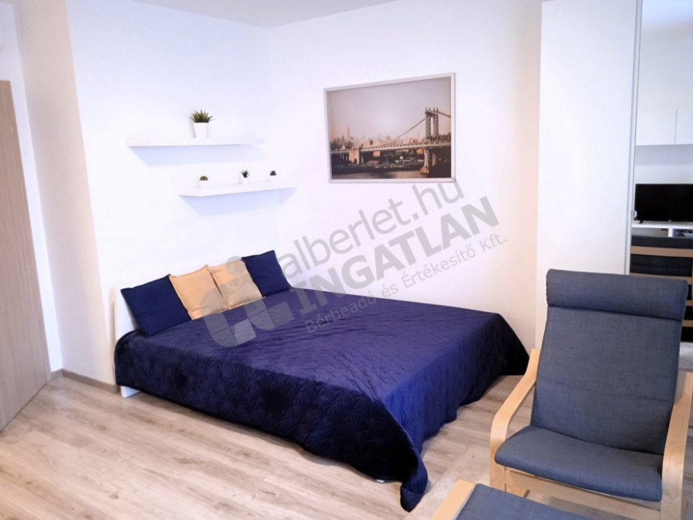 A Young City lakóparkban ,újépítésű, világos, nagy erkélyes, berendezett garzon kiadó .