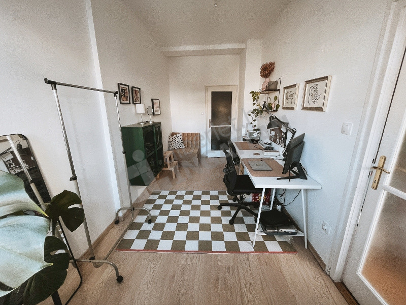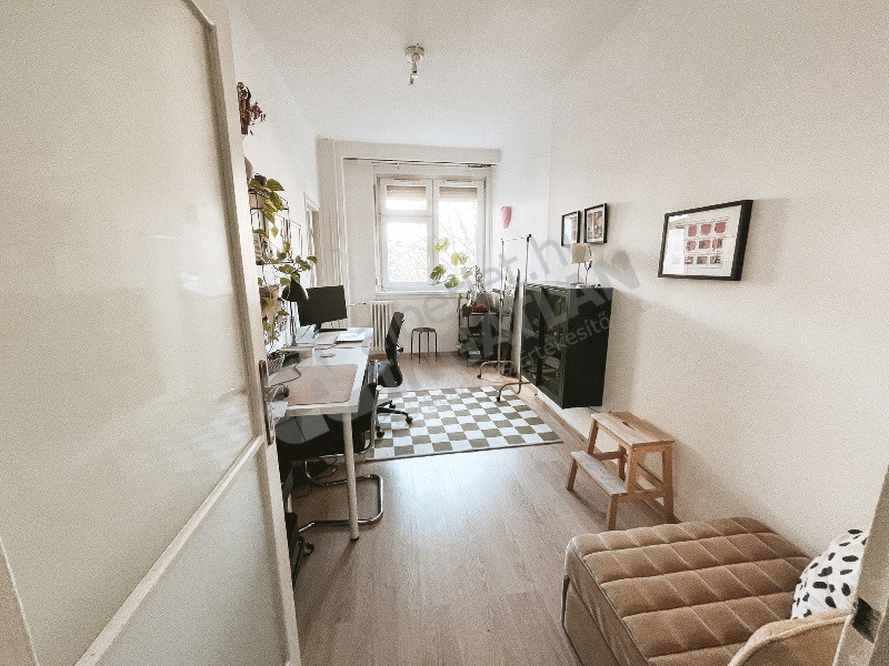 A bejárati ajtóval szemben felújított, világos félszoba található.