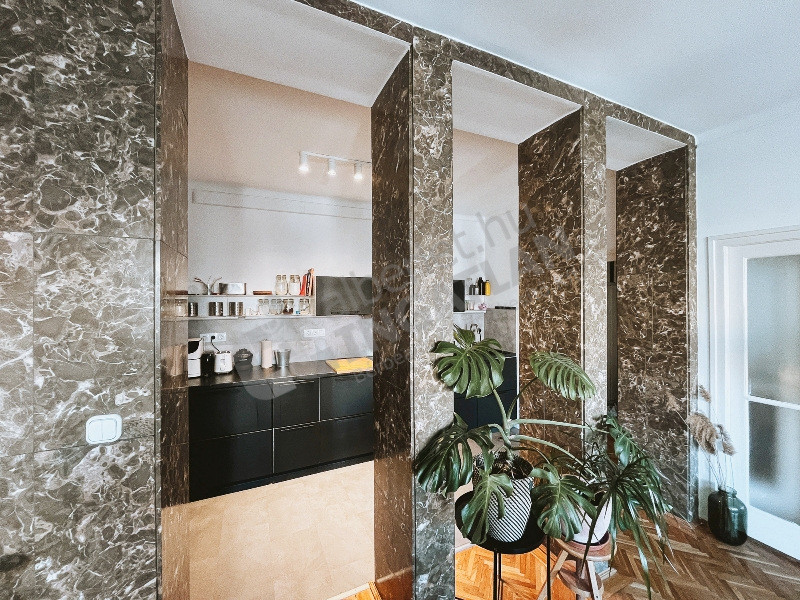 A nappali tágas és világos, karakterét a 2 márványoszlop adja. A szélessávú internet biztosítja a kényelmes internetezést.