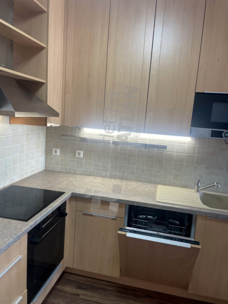 A modern konyha prémium minőségű Bosch gépekkel felszerelt (beépített hűtő, fagyasztó, mosó-szárítógép), valamint külön kamra is rendelkezésre áll. A beépített szekrények és polcrendszerek bőséges tárolási lehetőséget biztosítanak.