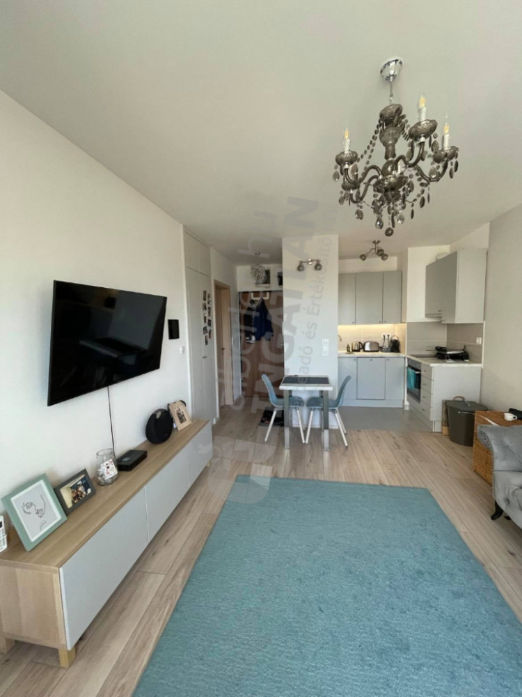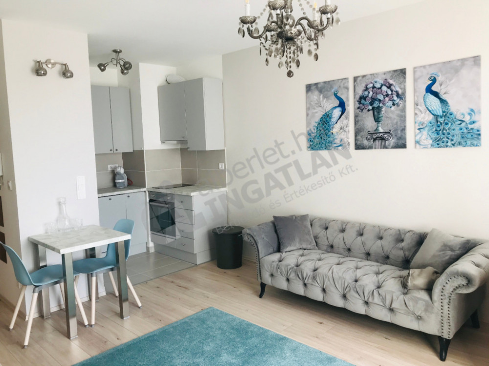 Azonnal költözhető, 2019-ben épült, teraszos (4m²), bútorozott, gépesített, csendes lakás a 4. emeleten, gondozott belső kertre néző kilátással.