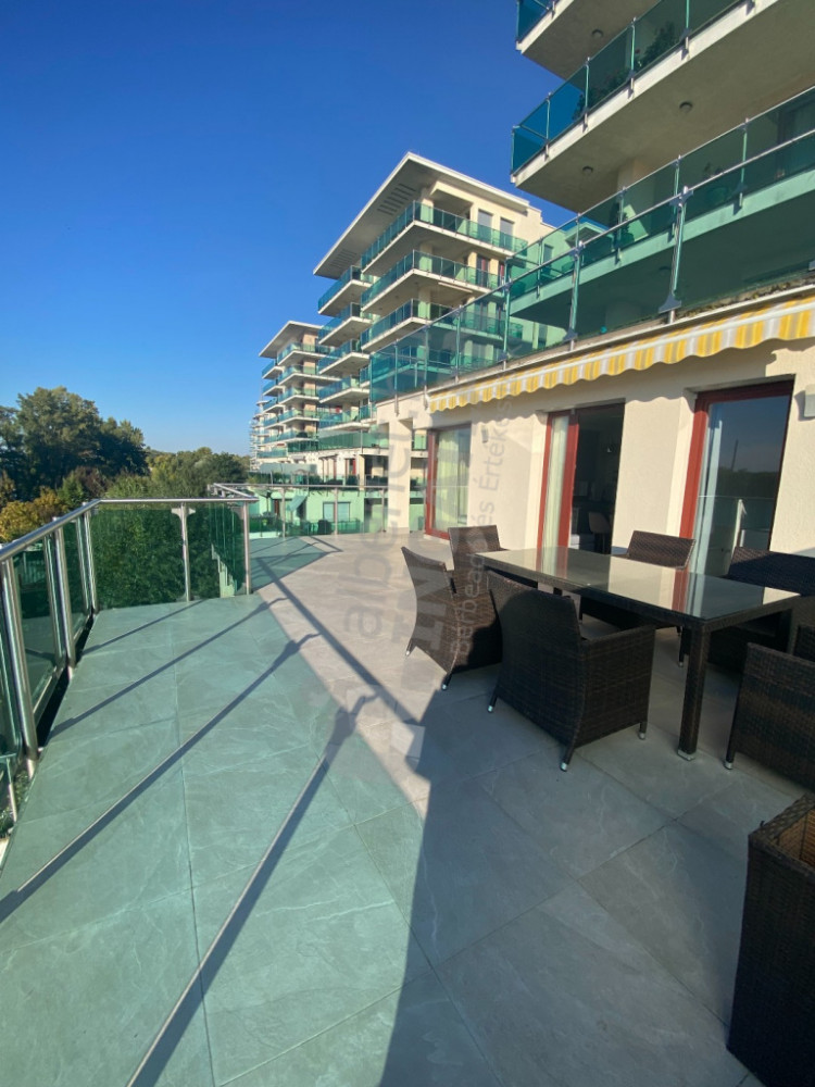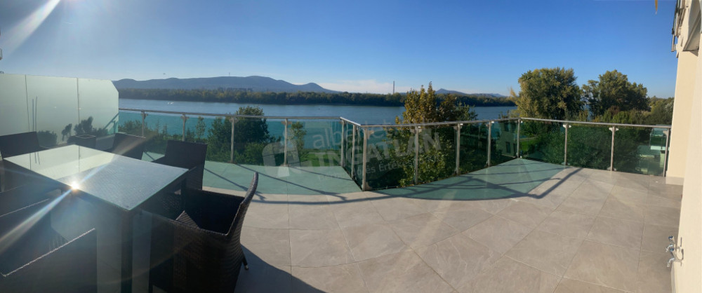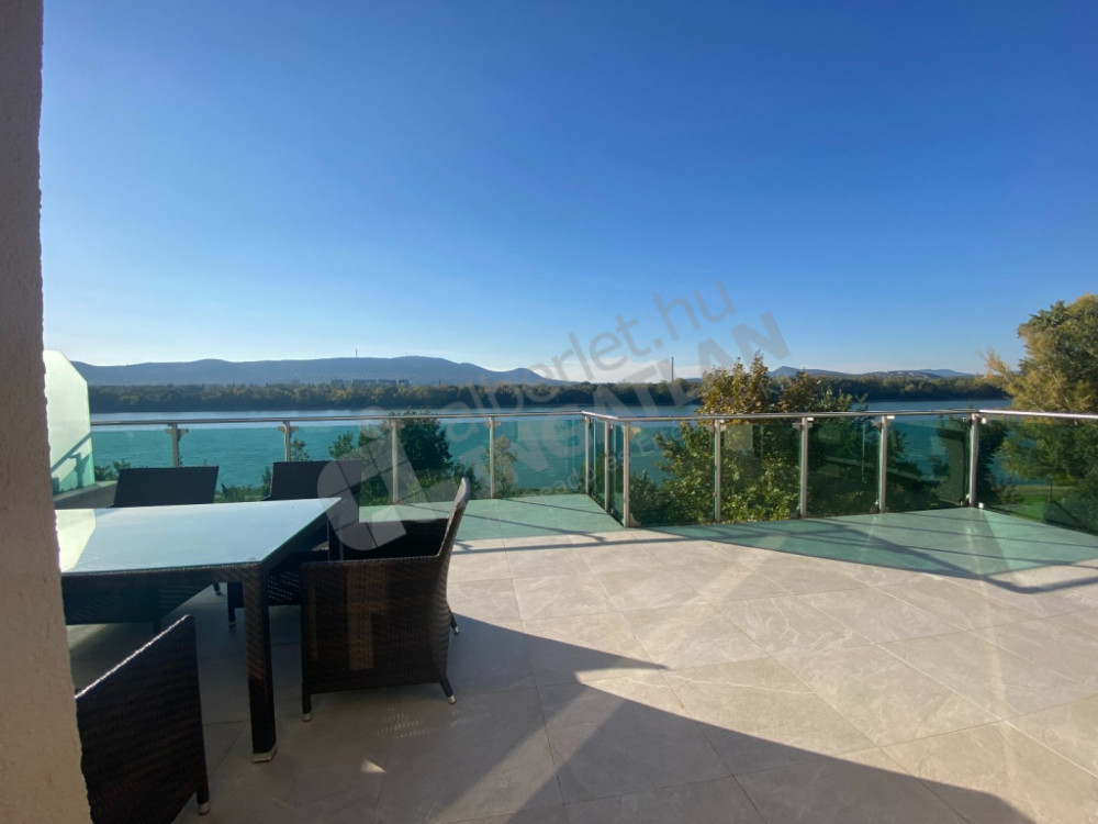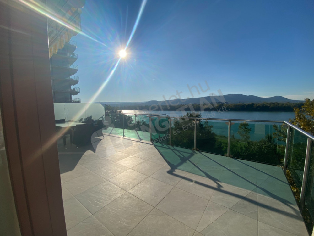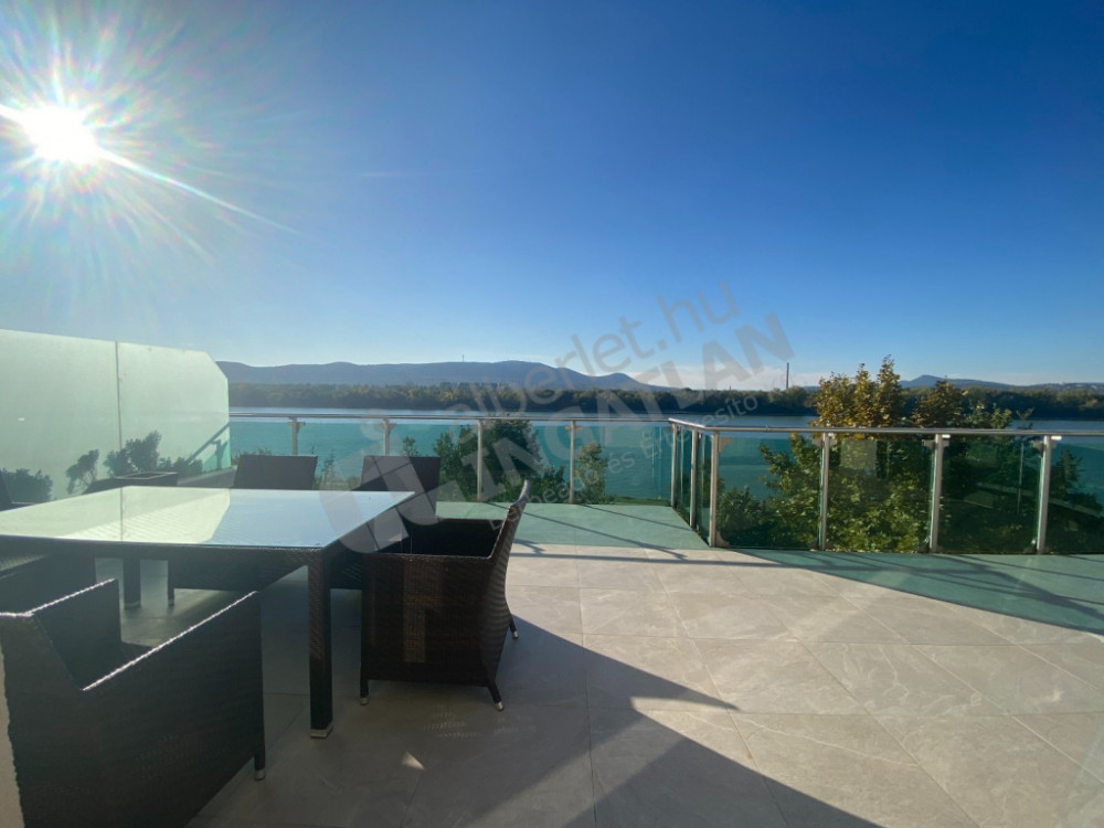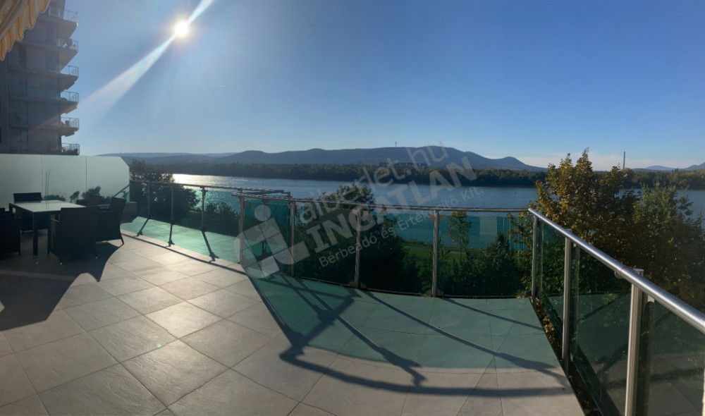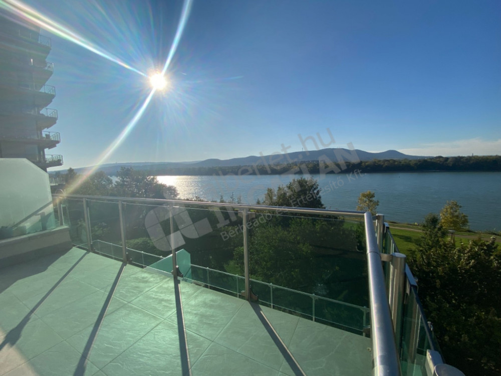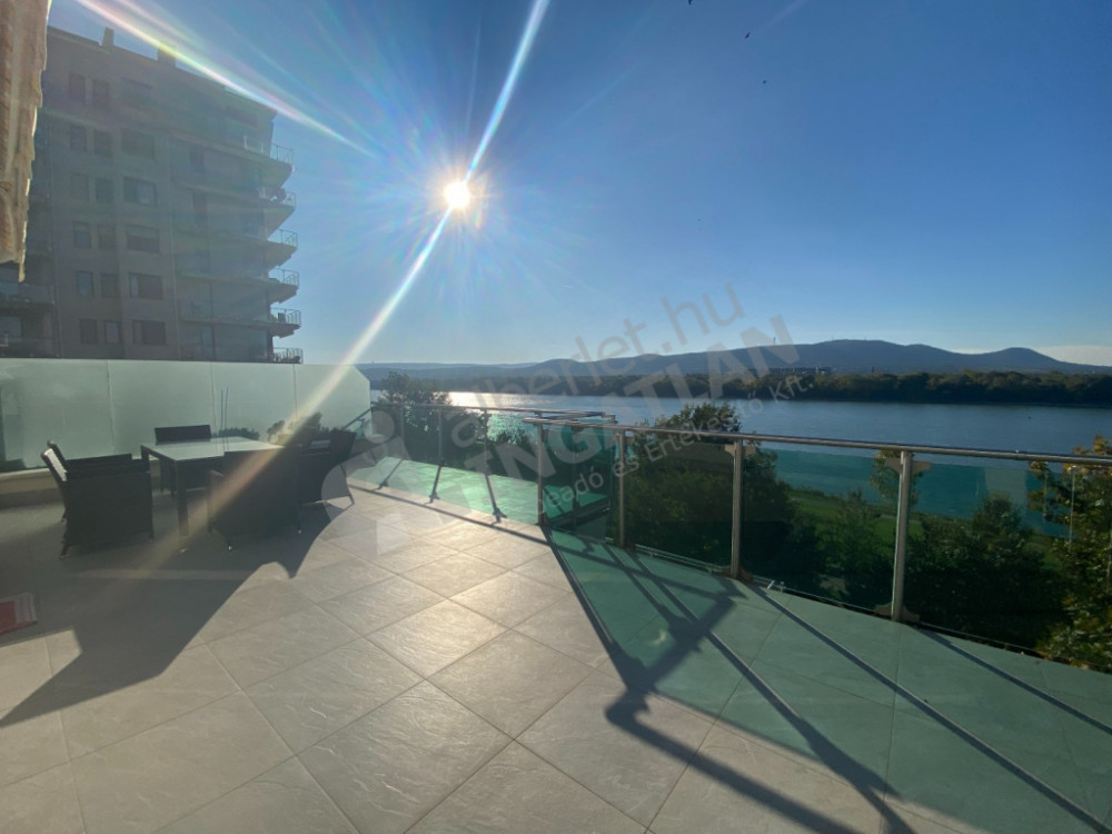 A lakás a 3. emeleten található, nyugati tájolású, így egész nap világos, a Dunára néző, 50 m²-es teraszról pedig páratlan kilátás nyílik.