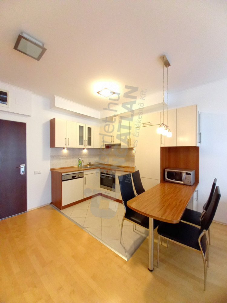 A lakás bútorozottan kiadó, konyhában beépített-hűtő, -mélyhűtő, -sütő, -főzőlap, -mosogatógép, -páraelszívó van és mikrohullámú sütő, a fürdőben mosógép, a nappaliban TV, légkondicionálás, kaputelefon, kábel TV, gyors internet elérés. WC a fürdőben és külön is.