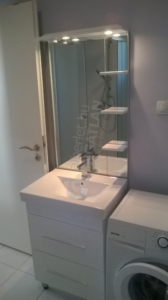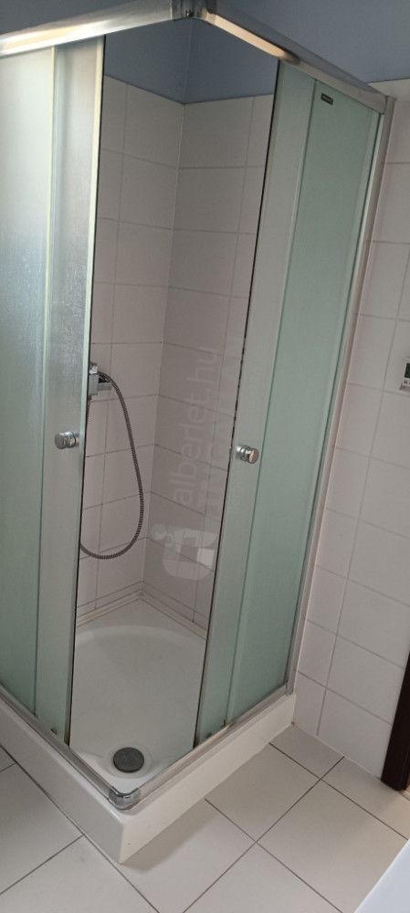 A zuhanyzós fürdőszobában található a WC is. A helyiség berendezett: automata mosógép, üvegajtós zuhanykabin, törölközőszárító radiátor, mosdószekrény és tükör található.