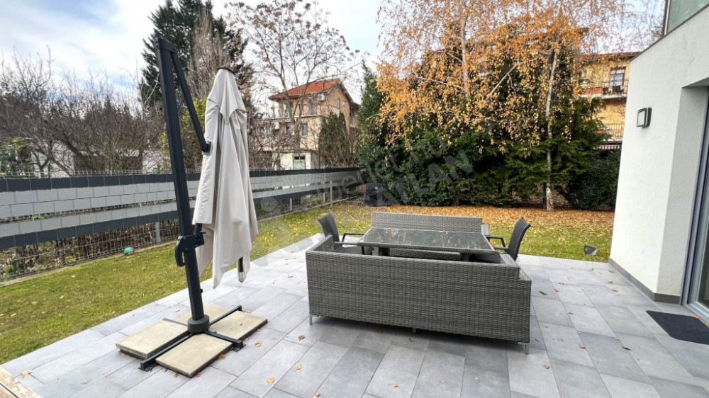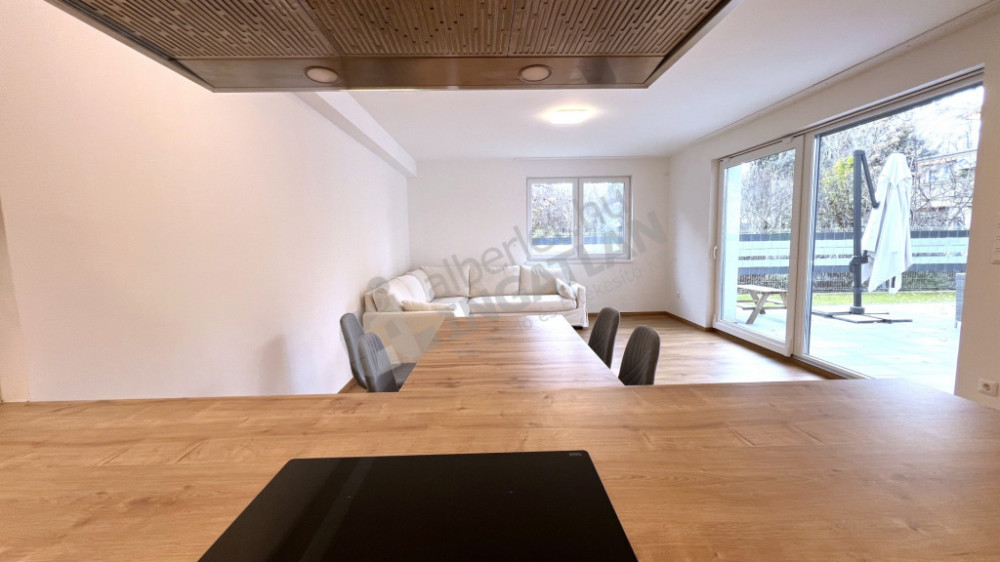 egy 126 m2-es, 4+1 szobás, TERASZOS és KERTKAPCSOLATOS lakás.