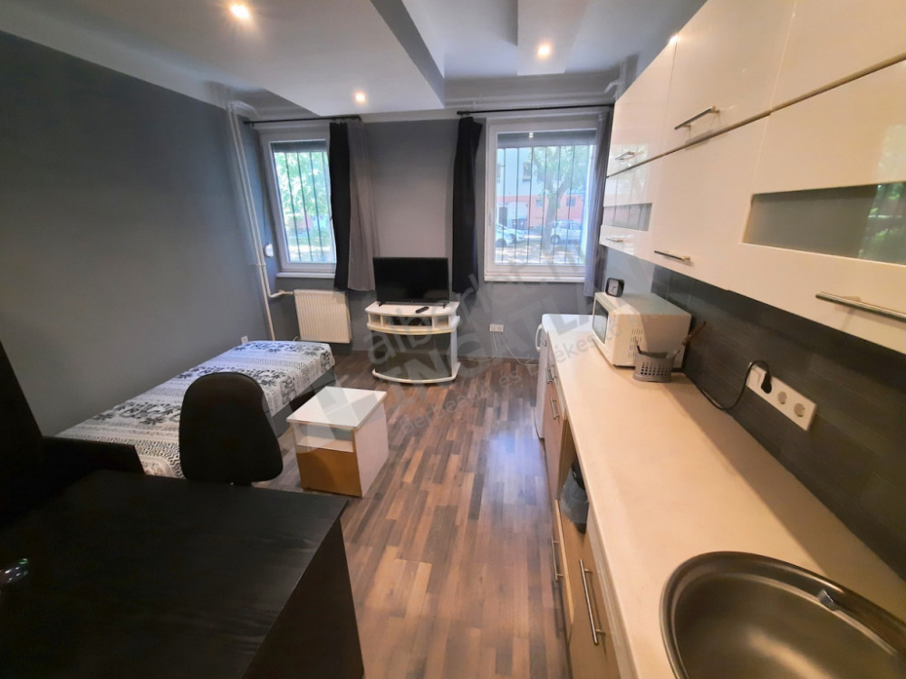 Zuglóban a SZIKSZÓ PARKBAN kiadó egy FELÚJÍTOTT 20nm, utcai nézetű VILÁGOS, FÖLDSZINTI GARZON!