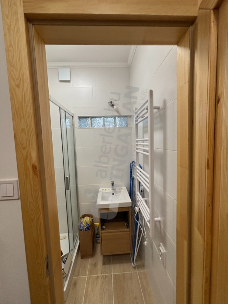 Az ingatlan részben bútorozott, konyhája ablakos és hűtővel, konyhabútorral, indukciós főzőlappal felszerelt, a fürdő zuhanyzós és fürdőszoba szekrény található benne, a wc külön helyiségben van.
