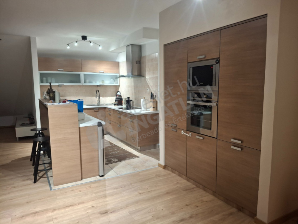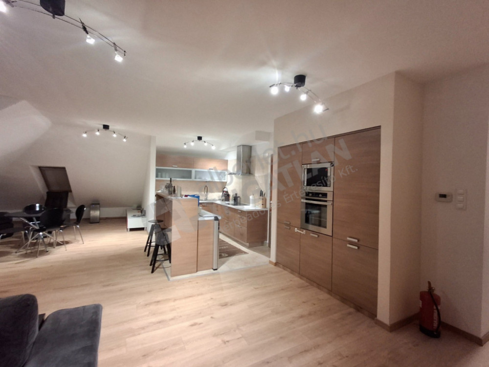 A lakás zárt udvaron belüli, kis lakásszámú társasház tetőterében helyezkedik el, elrendezése kiváló: 3 szoba + amerikai konyhás nappali kamrával, külön zuhany, külön wc, valamint egy kádas fürdőszoba wc-vel kapott helyet benne, a nappaliból pedig panorámás terasz nyílik, és a mellette lévő hálószobából is egy kisebb erkély.