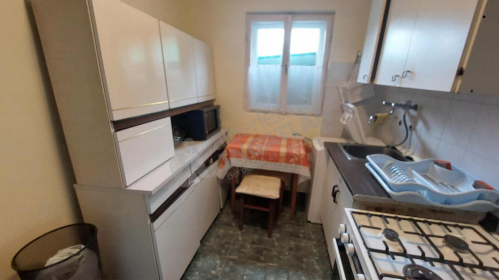 - Felszerelt konyha: hűtőszekrény, gáztűzhely