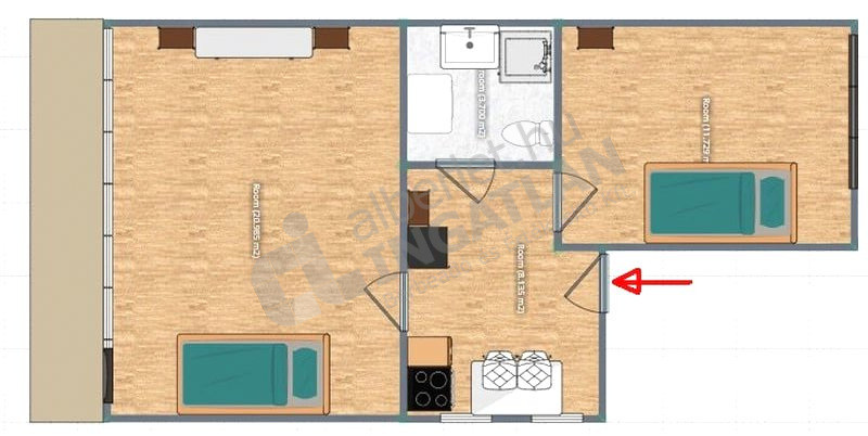 -60 nm, 2 külön nyíló szoba, a nagyobbik szobából egy 6 nm-es erkély csatlakozik.
